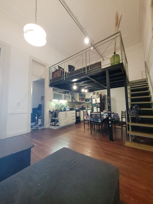 cuenta con un living comedor de 6 x 4 con cocina integrada y un entrepiso de 4 x 2.50, dormitorio de 4 x 3.50, dormitorio de 4 x 3.50 con entrepiso de 4 x 2.50, baño completo, patio semicubierto de 6 x 4, segundo patio cerrado con lavadero de 2.50 x 2.50, sotano de 30 m2